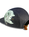 Fabric info: Remnant Denim, Hand painted and and hand stitched by Beautifully Frank, this hat has a combination of white + green hand painted flowers and also hand stitched petal detail.